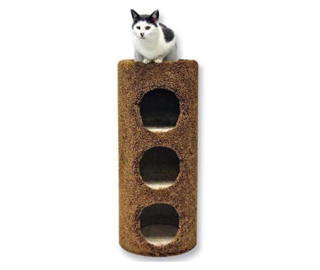 This cat condo features white plush and tan sisal for a variety of scratching surfaces. All that is needed is spare lumber, floor carpet left overs. Then combine, mix and match your kittens to upgrade them to majestic cats. Cat condos feature not just different levels, scratching posts, perches and ladders, but also ramps, tunnels and often toys attached so that your cat can have the most fun possible on furniture. Cats can jump all over the tree cat condo, but it's a problem because they jump to the top of the tree.